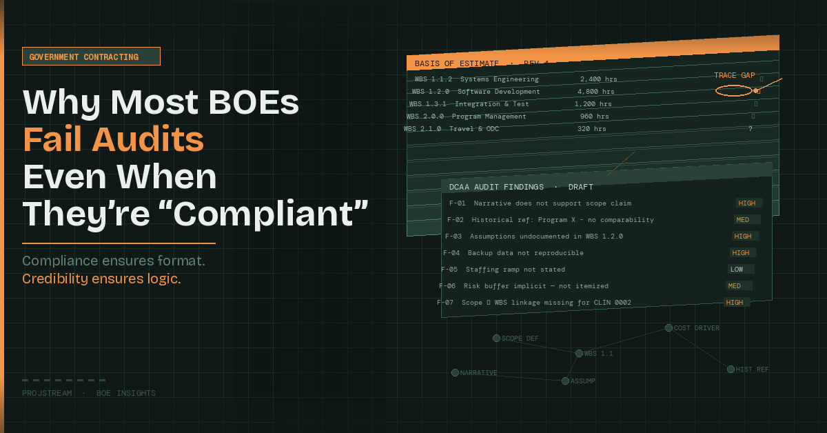 In competitive environments, credibility compounds. Teams that consistently submit audit-resilient BOEs build reputational capital with contracting officers and auditors.